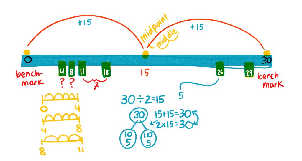 In one lesson, Berman uses a “more open number line” to help kids understand where numbers go without providing markers as hints. She tapes a strip of paper to a white board and labels one end 0 and the other 30, then hands out sticky notes labeled with the numbers 4, 8, 11, 18, 21, and 26 to her students. They’re directed to place their sticky notes wherever they think they belong on the number line, stretching out their number sense.